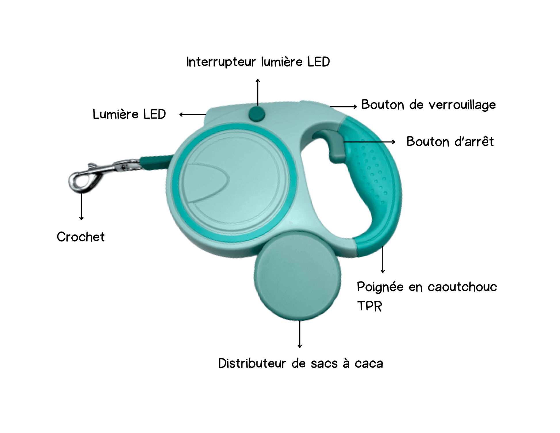 Laisse rétractable 3 en 1